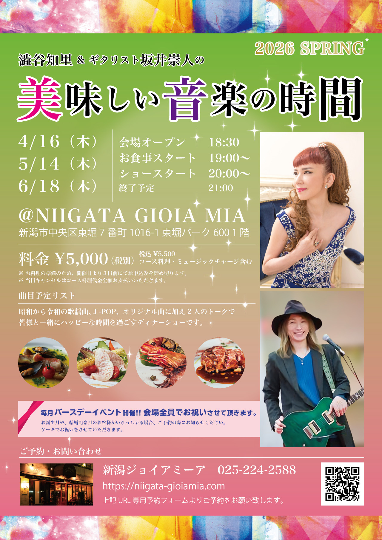 2026.4.16(木),5.14(木)6.18(木)澁谷知里&ギタリスト坂井崇人の「美味しい音楽の時間」